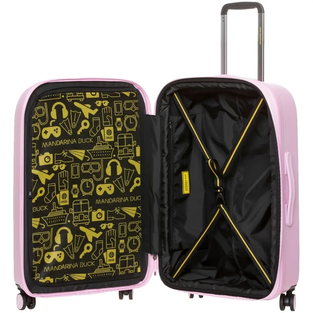 Коллекция чемоданов из поликарбоната Logoduck+ стала настоящим бестселлером: обтекаемые изящные формы, колеса в тон корпуса, крупный логотип бренда, подкладка с принтом и яркие цвета делают их уникальными в своем роде. Упаковочные ремни, разделитель на молнии и дополнительный карман для мелочей помогут аккуратно упаковать все необходимые вещи для поездки на 1-2 недели.