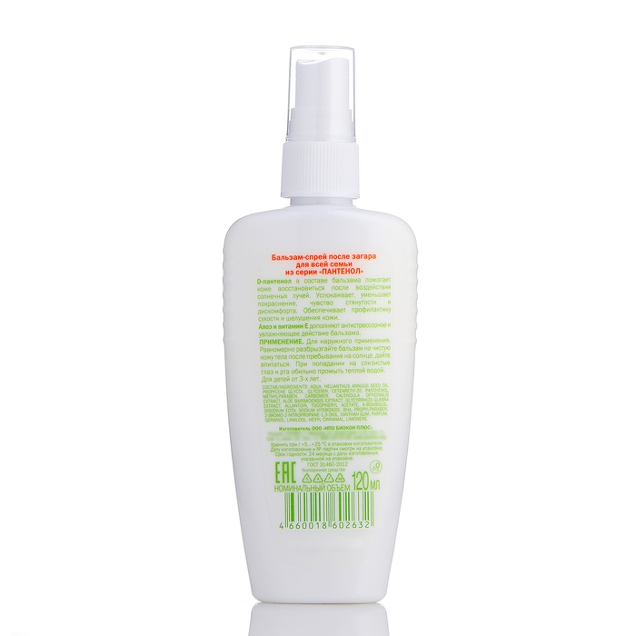 Защита средство от солнца - лёгкий, нежирный, прекрасно впитывающийся пантенол спрей после загара быстро и эффективно охлаждает и смягчает кожу после воздействия солнечных лучей, возвращает чувство комфорта, придает ей гладкость и бархатистость. Тонизирует, устраняет неприятные ощущения после загара. Высокий процент пантенола, масла ши и подсолнуха, экстракты череды и ромашки помогают коже восстановиться, уменьшают покраснение, чувство стянутости и дискомфорта, увлажняют, устраняют сухость и шелушение. Не содержит спирт, некомедогенен. Бальзам легко впитывается, не оставляет жирных следов на одежде. Экономичен в использовании. Уходовая косметика женская, мужская и для детей от 3 лет.