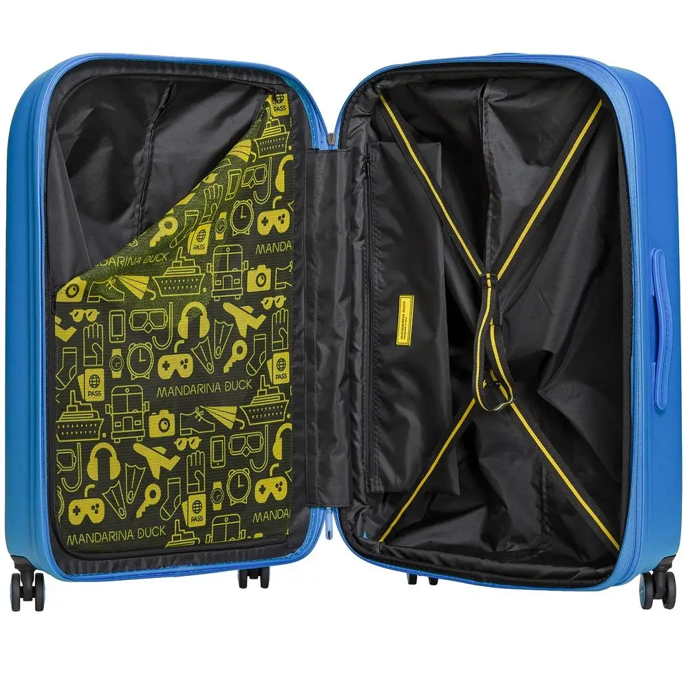Коллекция чемоданов из поликарбоната Logoduck+ стала настоящим бестселлером: обтекаемые изящные формы, колеса в тон корпуса, крупный логотип бренда, подкладка с принтом и яркие цвета делают их уникальными в своем роде. Упаковочные ремни, разделитель на молнии и дополнительный карман для мелочей помогут аккуратно упаковать все необходимые вещи для длительного отпуска или семейной поездки.