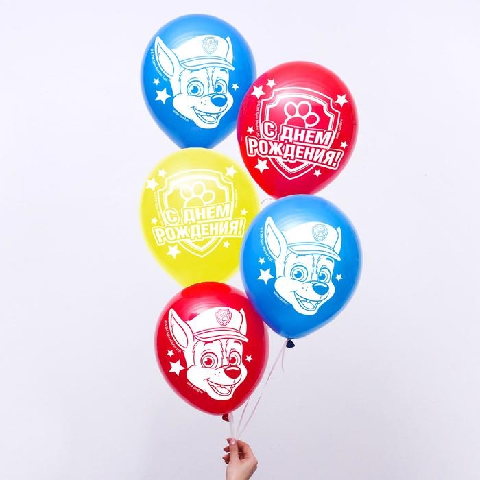 Шар воздушный "С Днем рождения!", 12 дюйм, латексный, 5 штук, Щенячий патруль