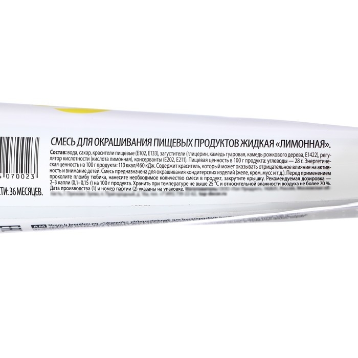 Краситель водорастворимый с высокой концентрацией красящего пигмента. Густая консистенция позволяет ему хорошо окрашивать по всей массе основные кондитерские полуфабрикаты (желе, мусс, крем, тесто, мастика и другие), не изменяя их консистенцию. Не имеет вкуса и аромата, благодаря чему сохраняет первоначальные вкусовые свойства окрашиваемого продукта.