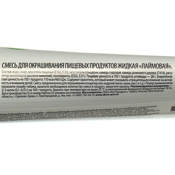 Пищевой краситель Top Decor гелевый «Лаймовый», 100 г