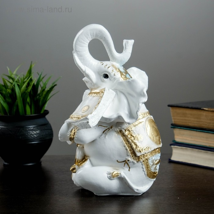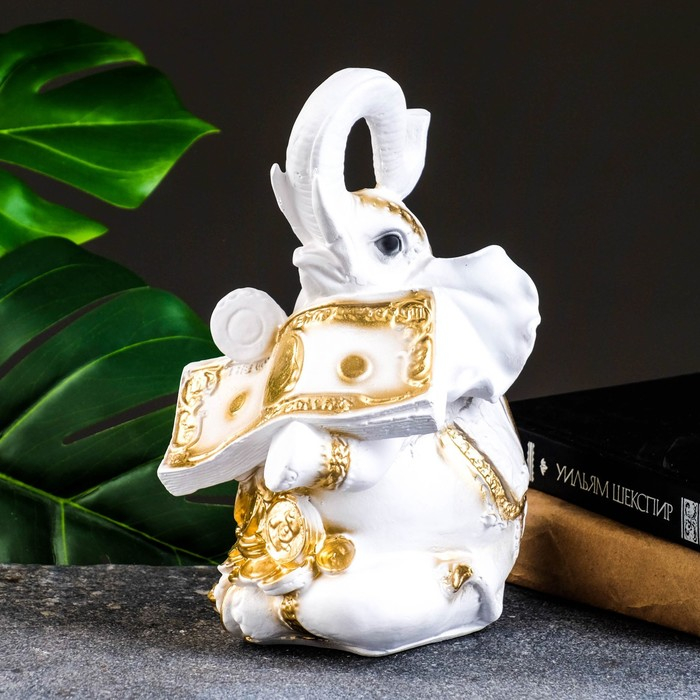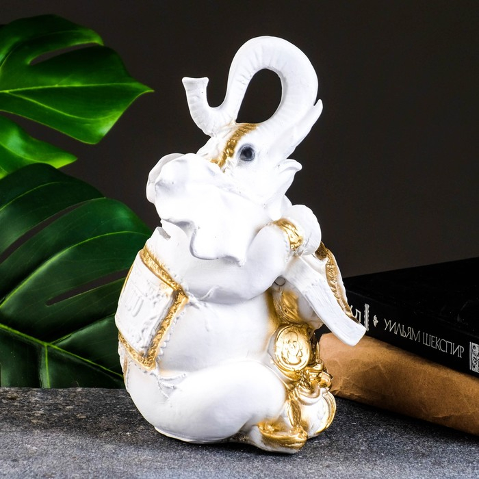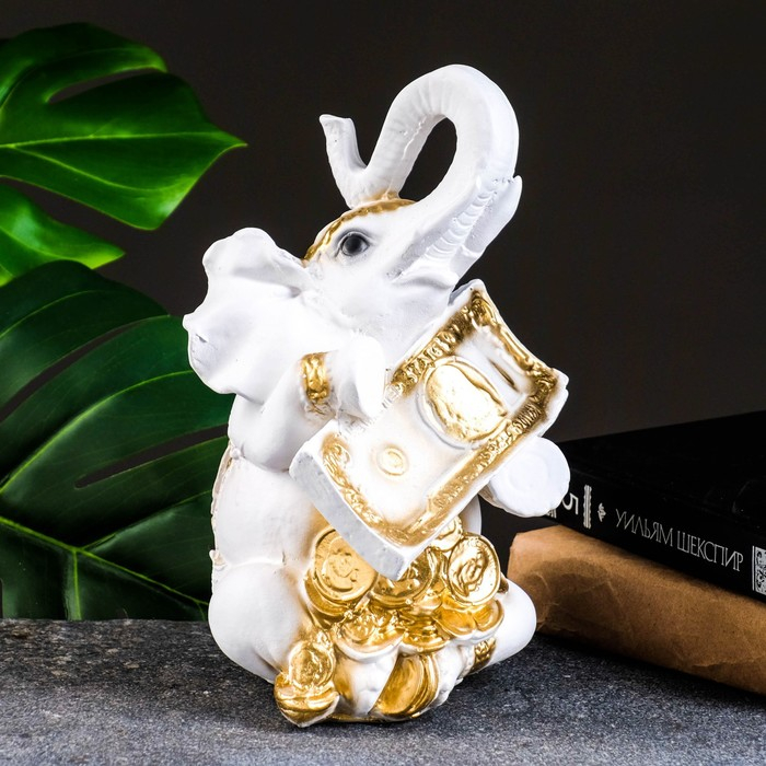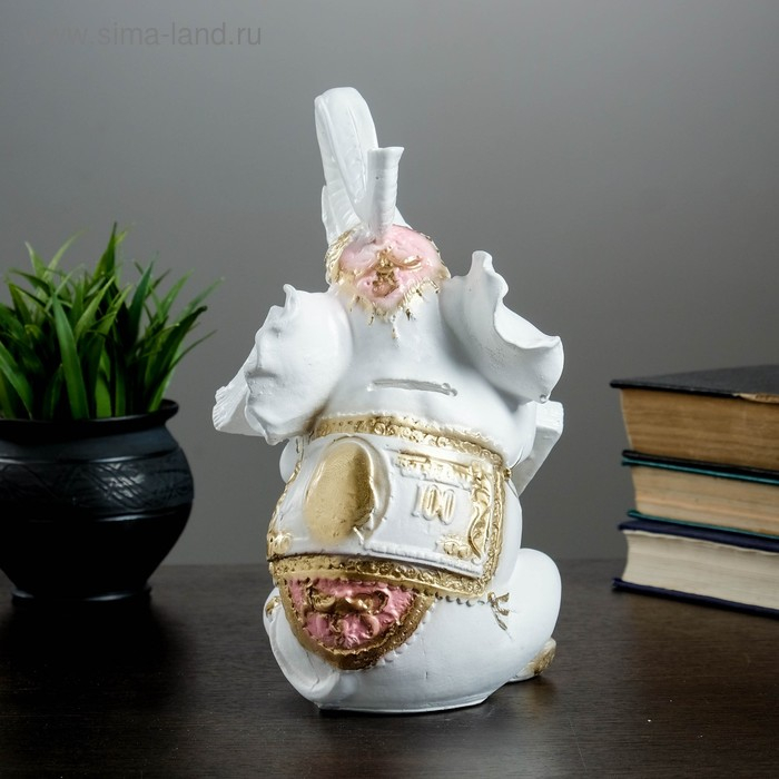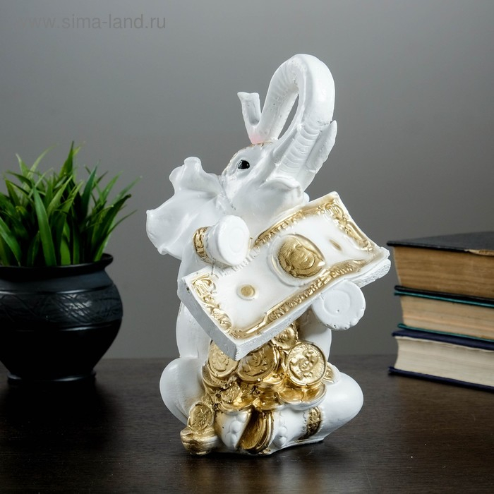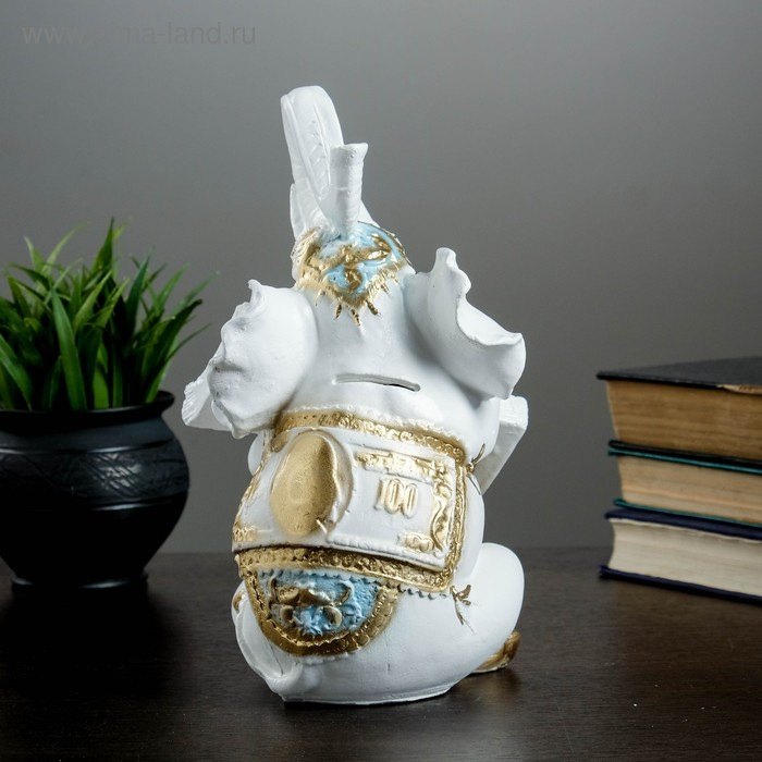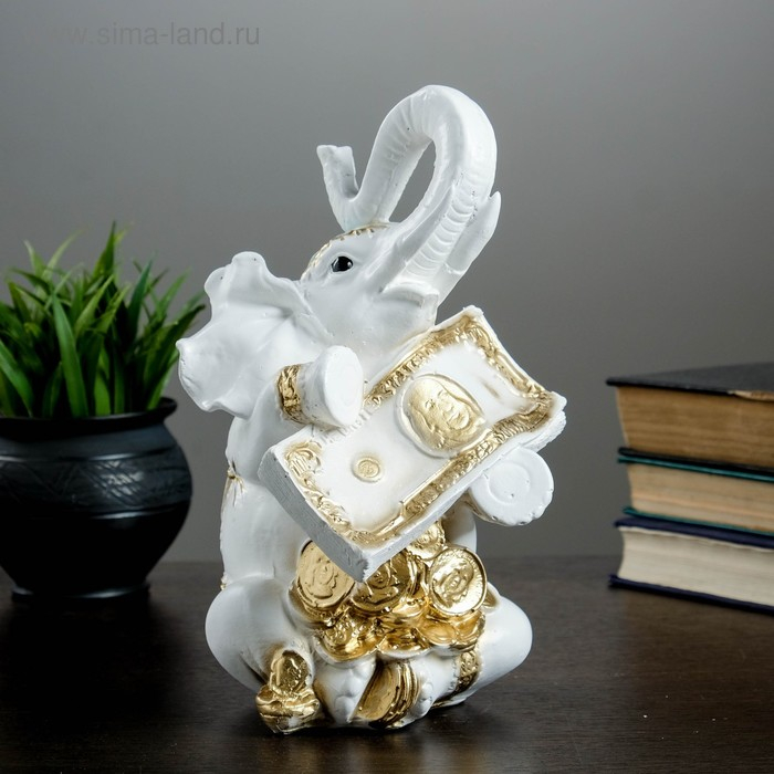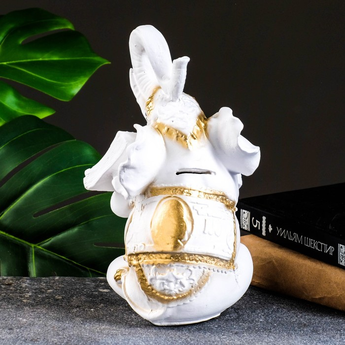 Копилка "Слон с деньгой" бело-золотой, 15х13х26см