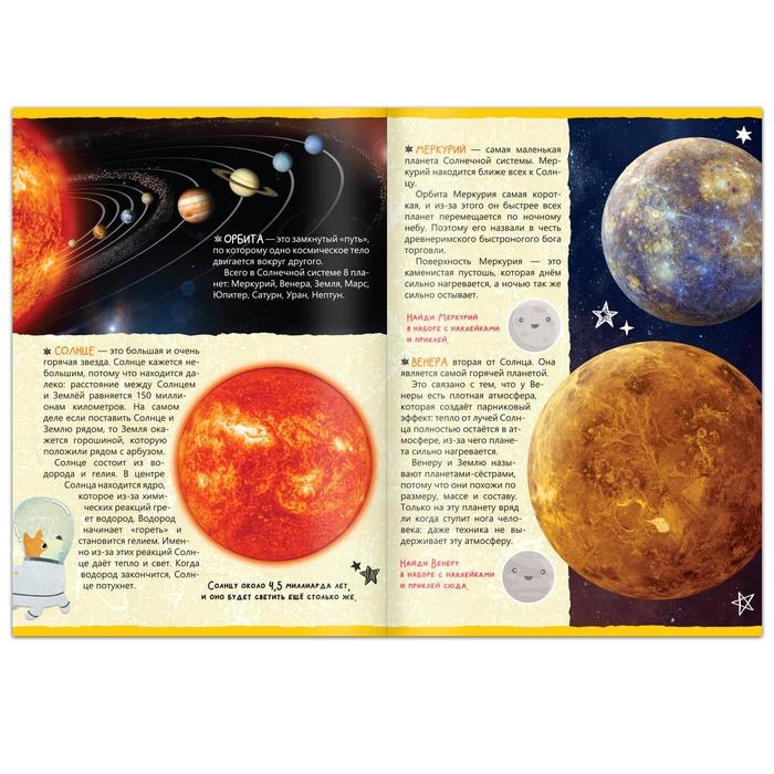 На каждом развороте есть задания, где необходимо приклеить картинки с соответствующими небесными телами. Упражнения развивают мелкую моторику, внимание, речь и расширяют кругозор.