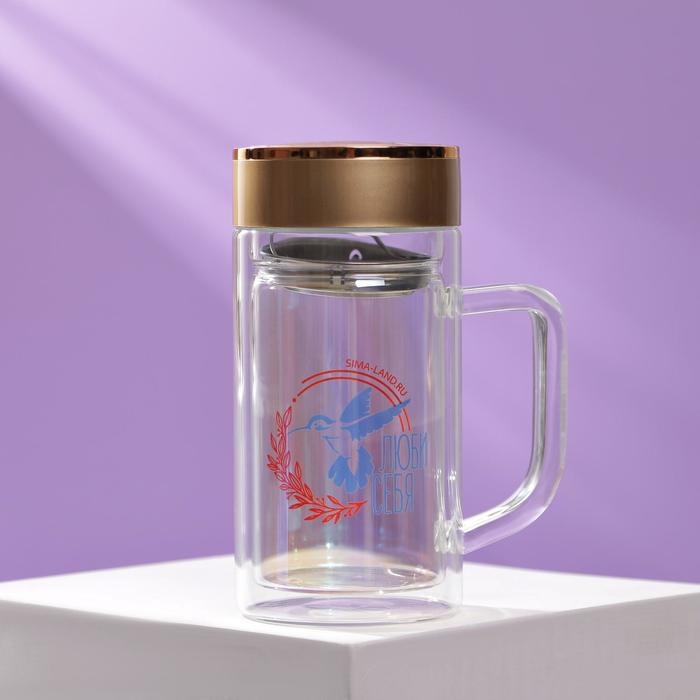 Термокружка стеклянная «Люби себя», 350 мл