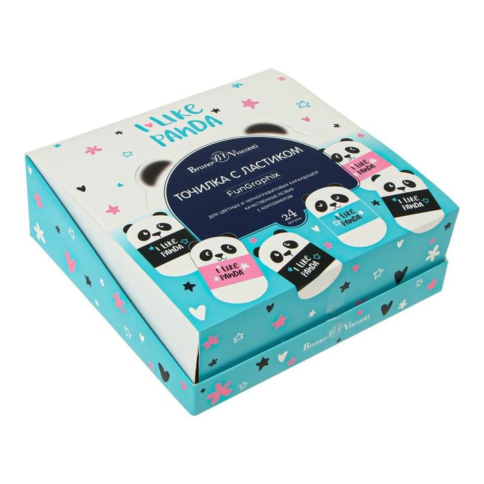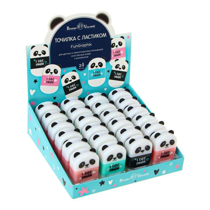 Точилка 1 отверстие с контейнером FunGraphix "Панда", МИКС