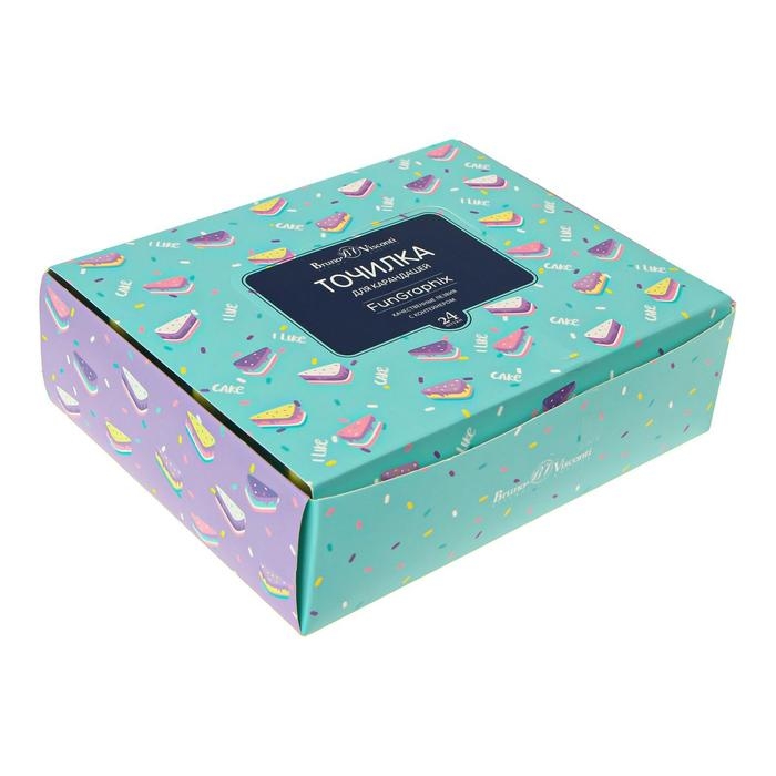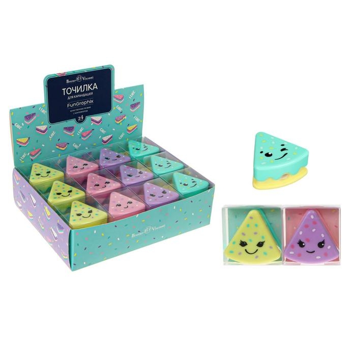 Точилка 1 отверстие с контейнером FunGraphix "Кексик", МИКС