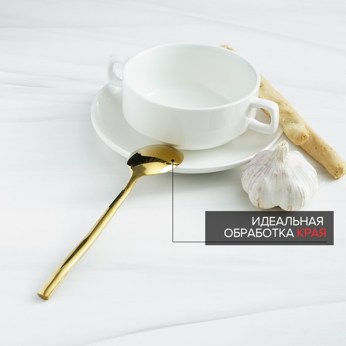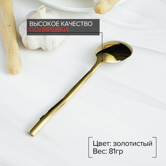 Столовая ложка из высококачественной нержавеющей стали золотого цвета - идеальный выбор для праздничных сервировок и особенных случаев. Она имеет современный дизайн и зеркальную полировку, что придает ей элегантный и стильный вид.