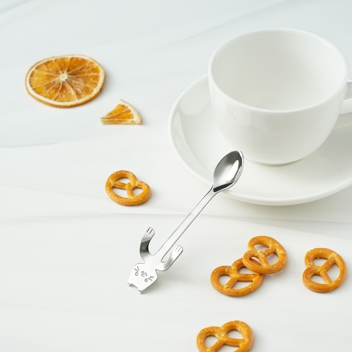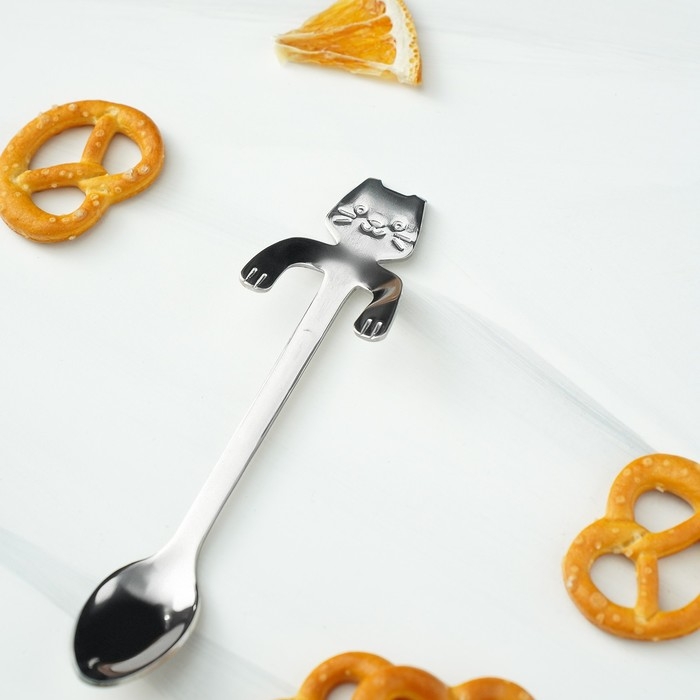 Ложка чайная из нержавеющей стали Magistro «Котик», длина 11,5 см, цвет серебряный