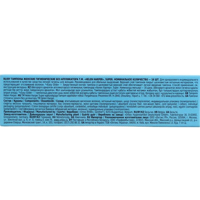 Описание: безаппликаторные тампоны Helen Harper разработаны и произведены согласно высочайшим требованиям качества на производственных линиях одного из крупнейших производителей средств личной гигиены на заводе в Германии.