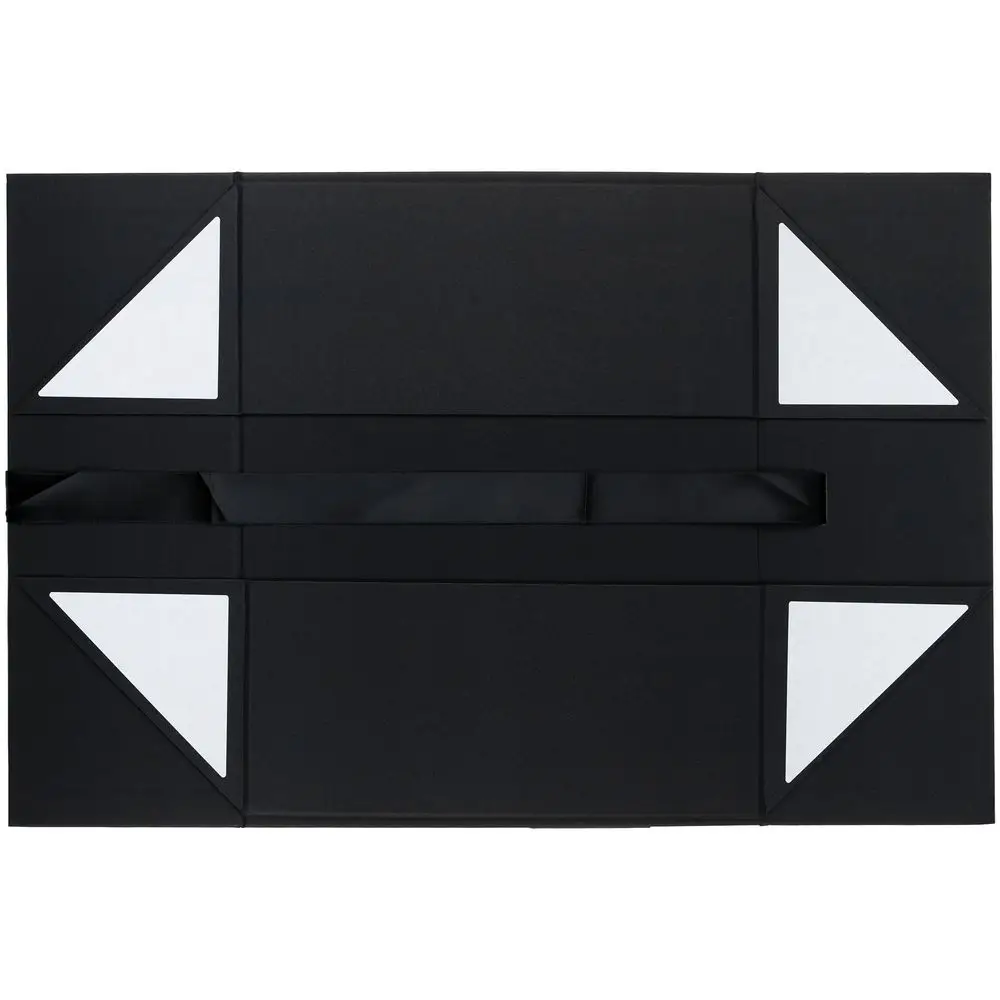Коробка из переплетного картона, кашированного тонированной в массе крафтовой бумагой. Крышка на двух магнитах дополнительно фиксируется репсовой лентой.Толщина картона 2 мм.