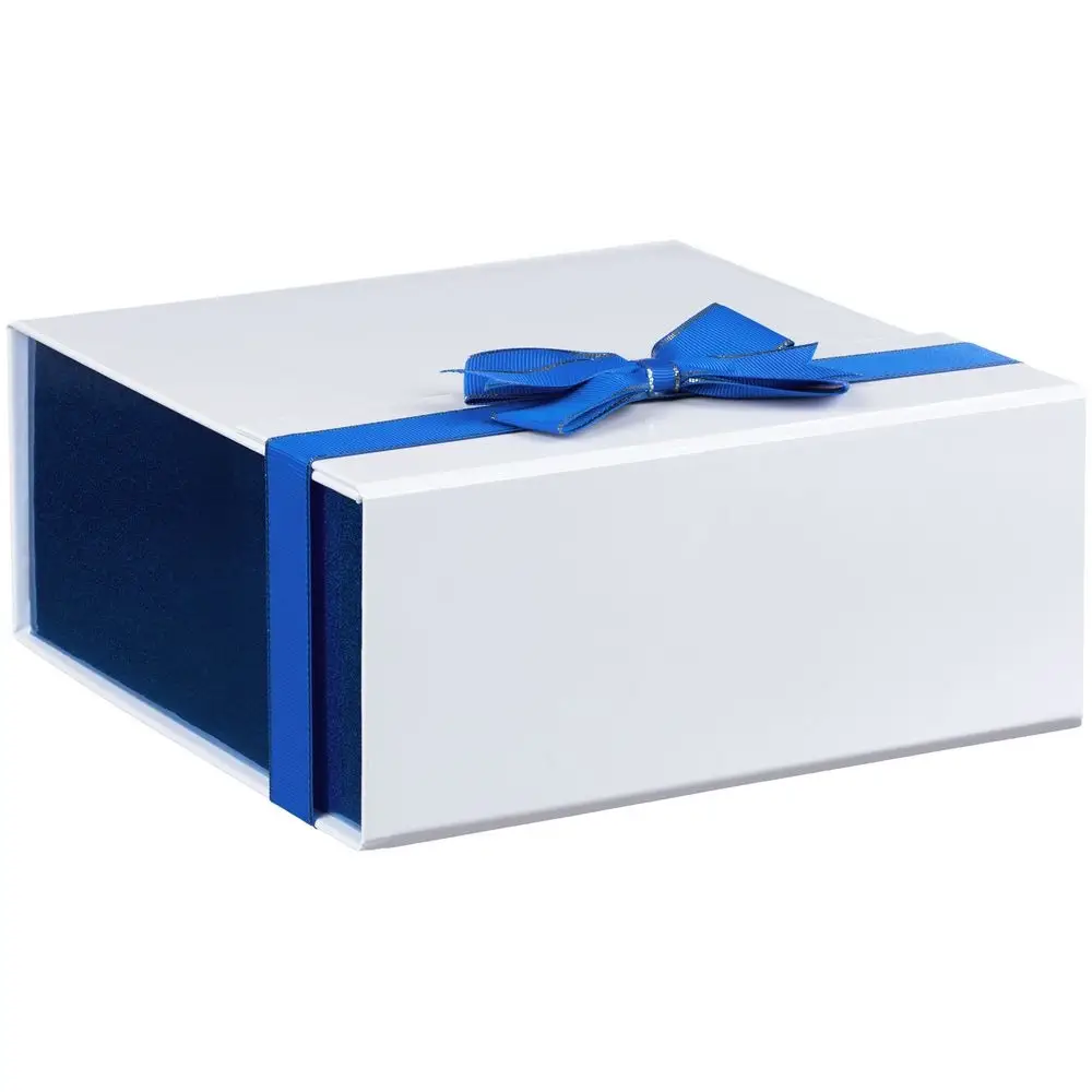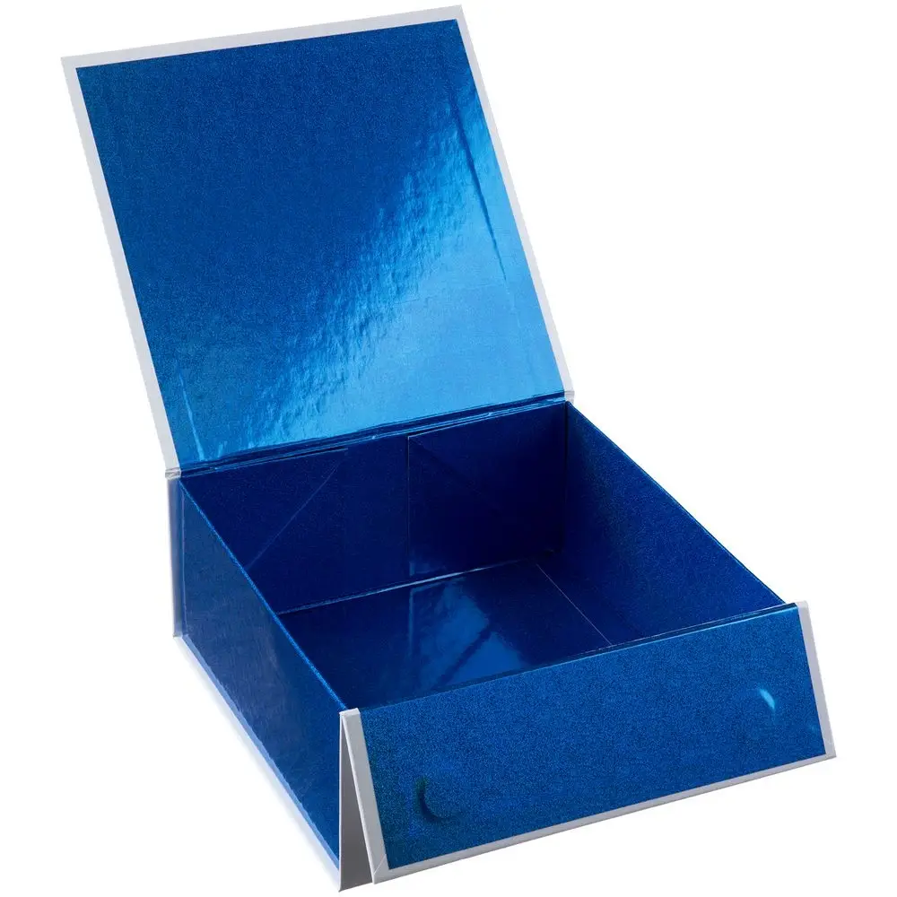 Коробка из переплетного картона, кашированного мелованной бумагой с глянцевой ламинацией. Крышка на двух магнитах дополнительно фиксируется лентой.Толщина картона 2 мм.