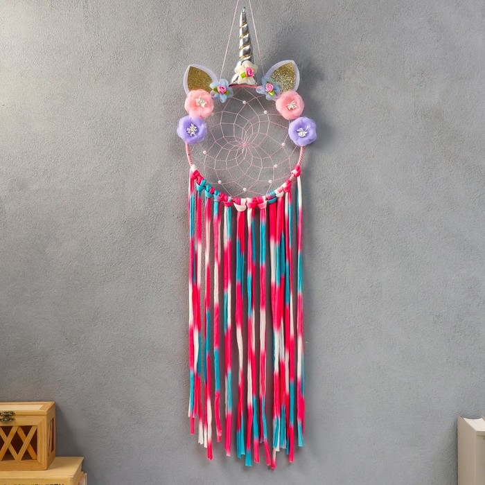 Ловец снов "Золотой единорог"МИКС цветные ниточки 70х20 см