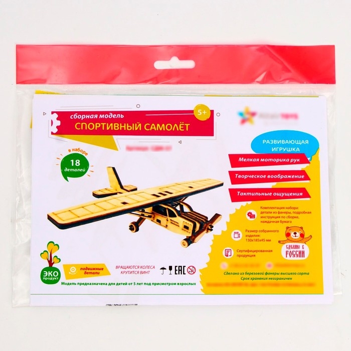 Деревянный конструктор. Cборная модель «Спортивный самолёт» 18 деталей