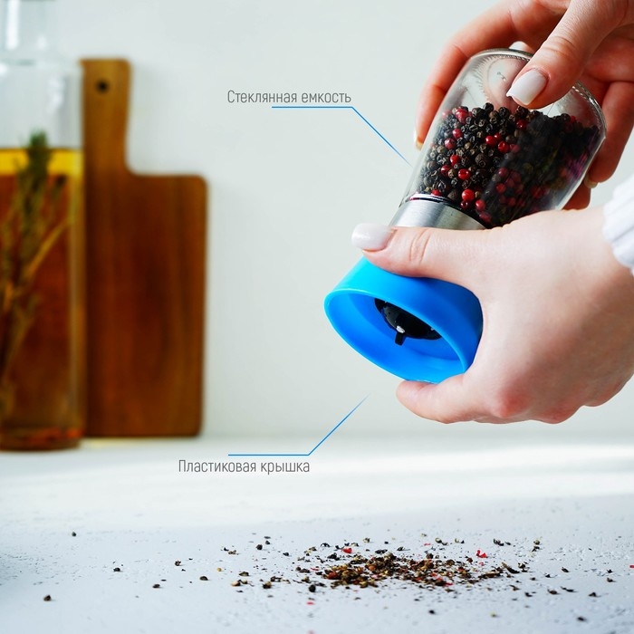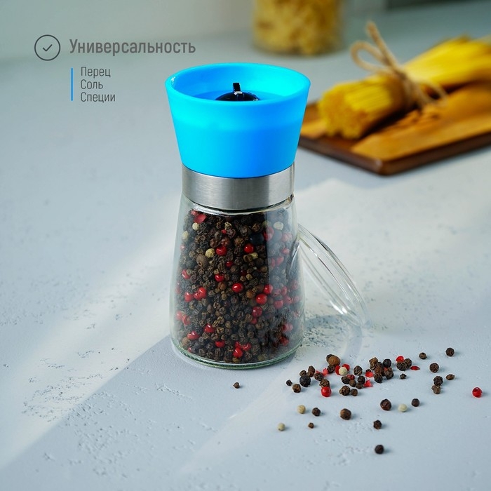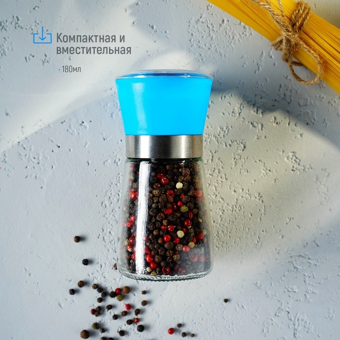 Мельница для специй Доляна «Модерн», 180 мл, 6,5×13 см, цвет голубой