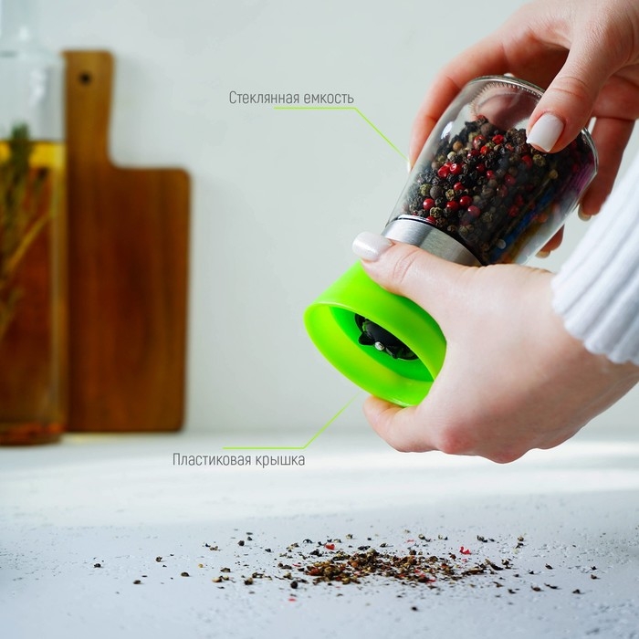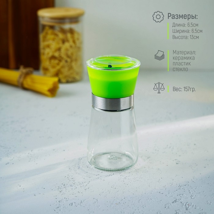 Мельница для специй Доляна «Модерн», 180 мл, 6,5×13 см, цвет зелёный