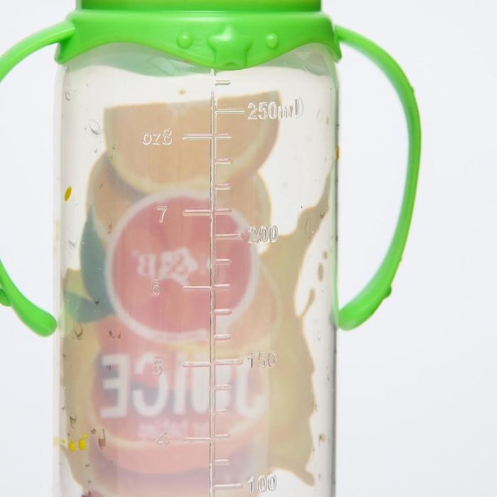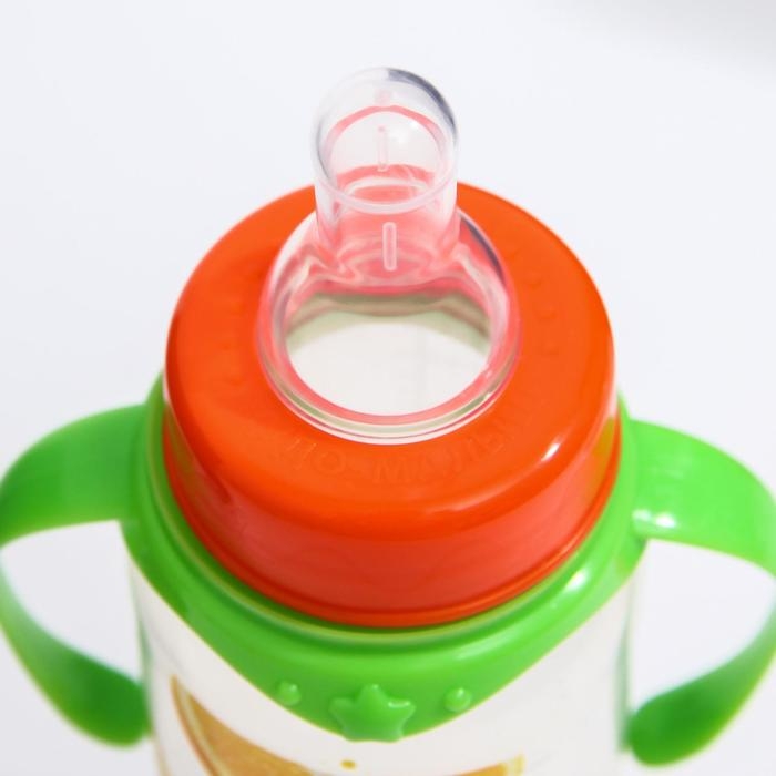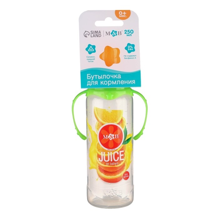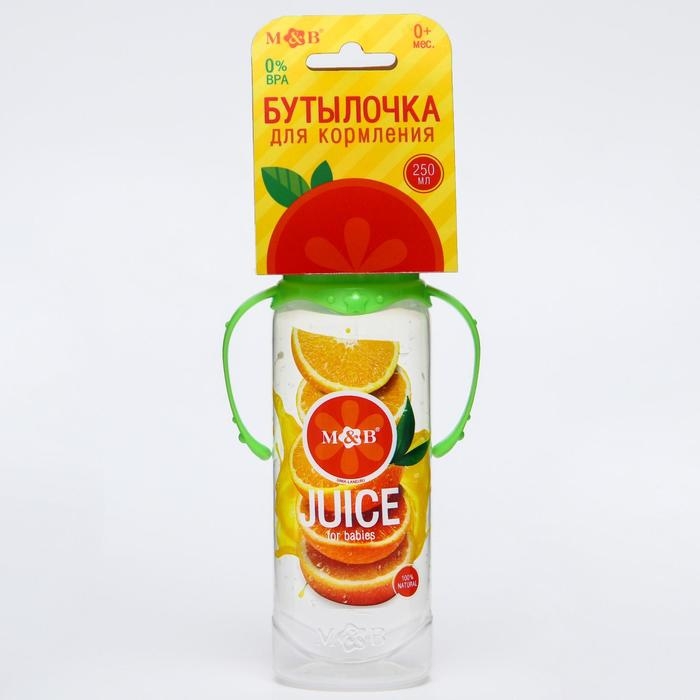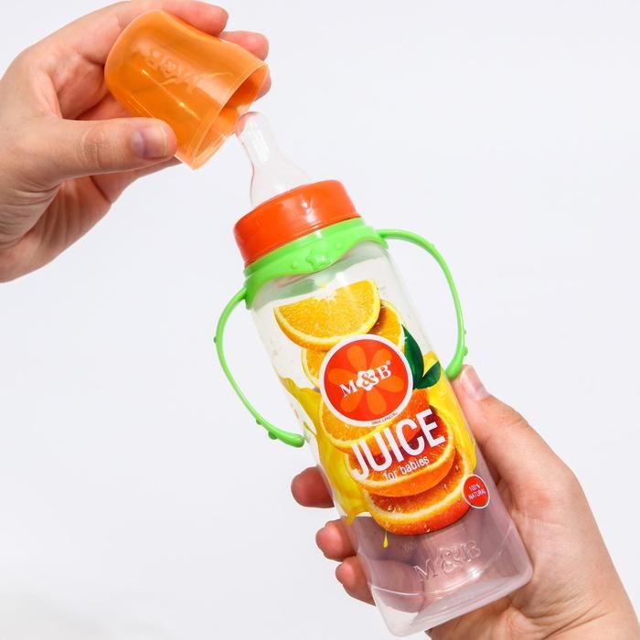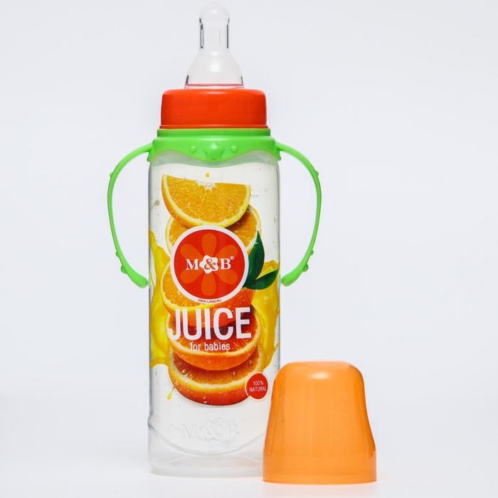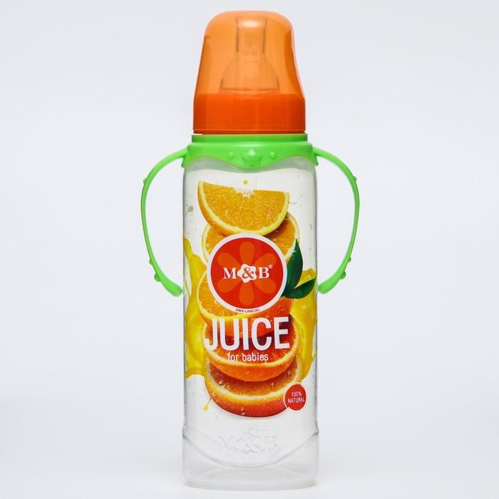 Бутылочка для кормления «Апельсиновый сок», классическое горло, 250 мл., от 0 мес., цилиндр, с ручкам