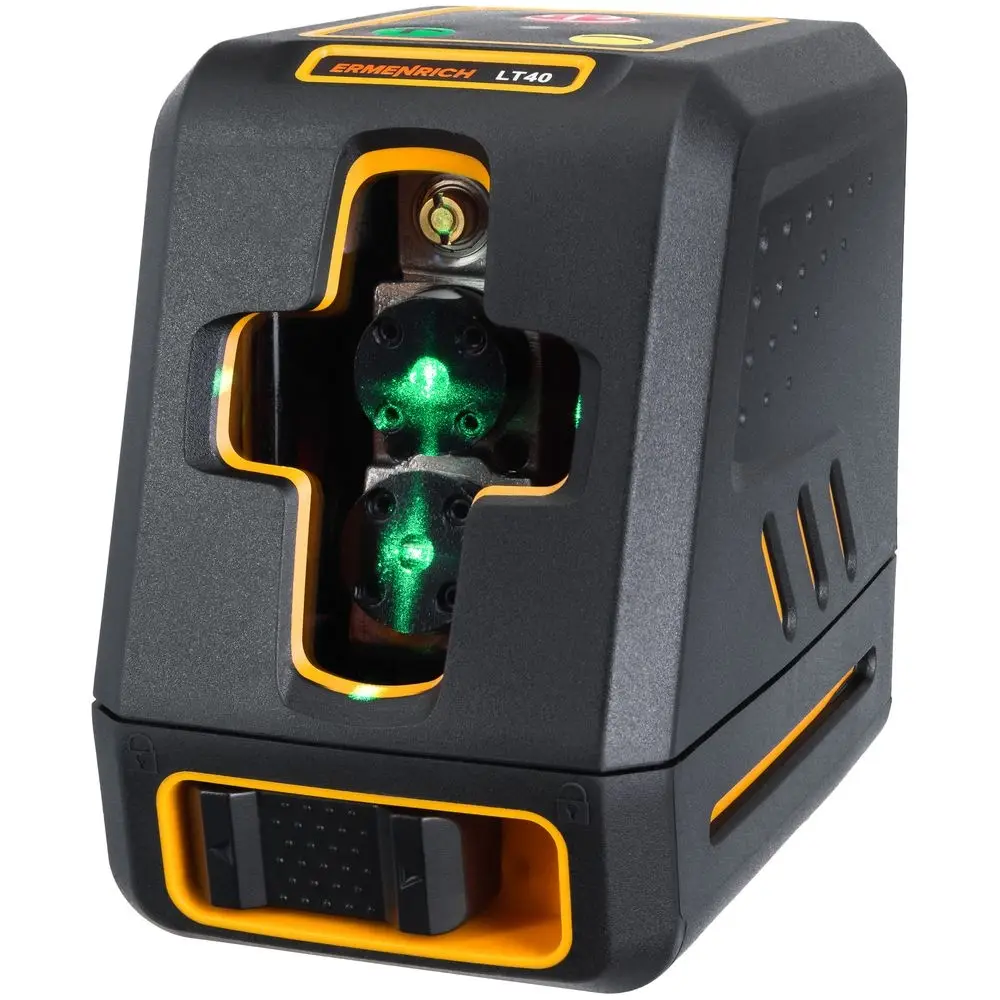 Линейный лазерный уровень Ermenrich LT40 выстраивает перекрестье из двух зеленых линий с помощью лазерных светодиодов. Прибор позволяет выполнять точное выравнивание поверхностей при выполнении строительных, отделочных и ландшафтных работ. Угол развертки лучей составляет 130 градусов в обеих плоскостях — по горизонтали и вертикали.