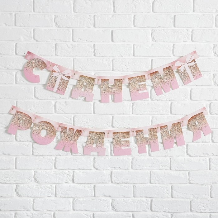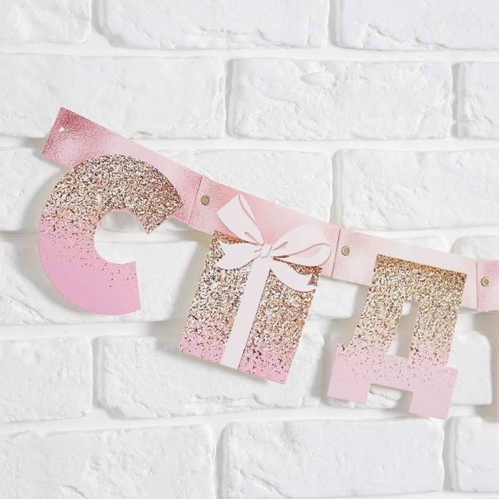 Гирлянда на люверсах «С Днем Рождения», розовая с подарком, длина 225 см