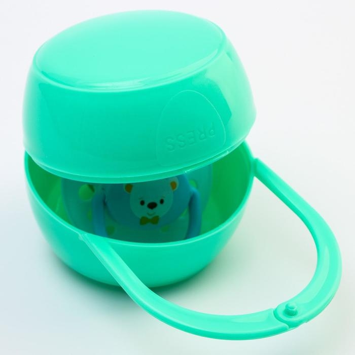Используйте для хранения пустышки специальный контейнер. В нём маленький предмет не потеряется, не испачкается и будет всегда под рукой.Аксессуар пригодится вам на прогулках и в дороге: поместите футляр в сумку или карман коляски.Товар изготовлен из безопасного пластика. Подходит для детей с рождения.