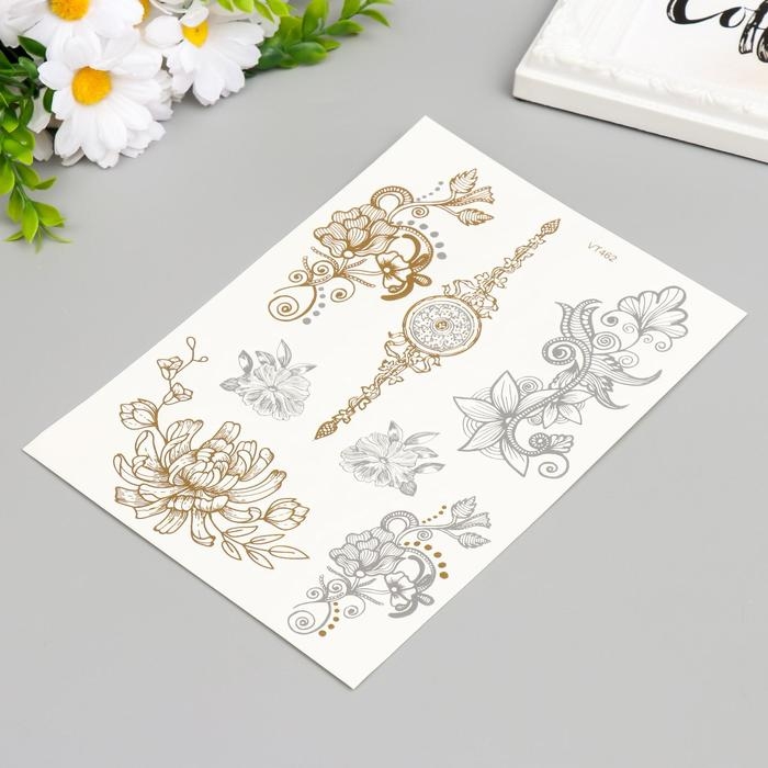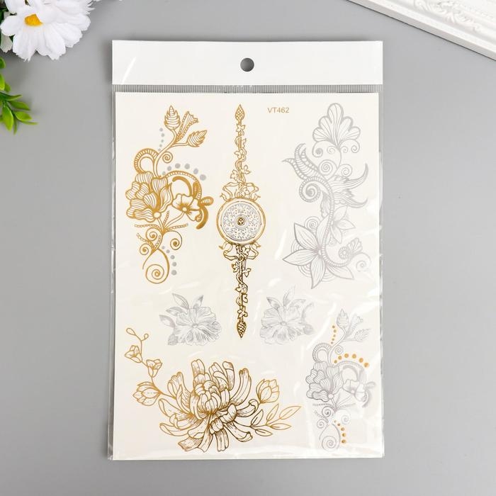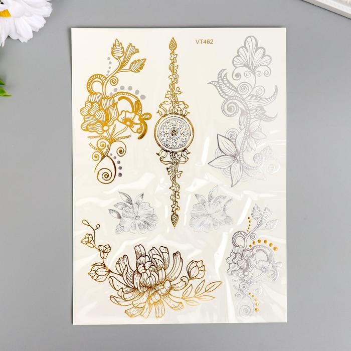 Татуировка на тело золото/серебро "Цветы" 21х15 см