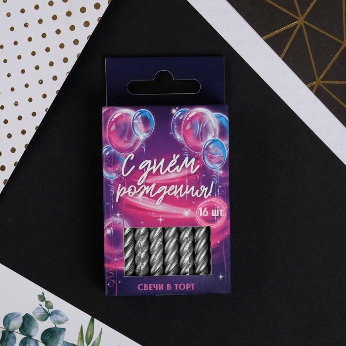 Свечи для торта, серебряные, 16 шт., 6,5 х 0,5 см