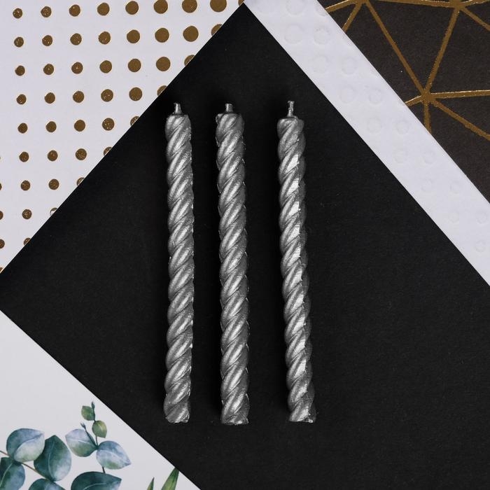 Набор свечи в торт "Спираль", 200шт, 5 см, серебряный металлик