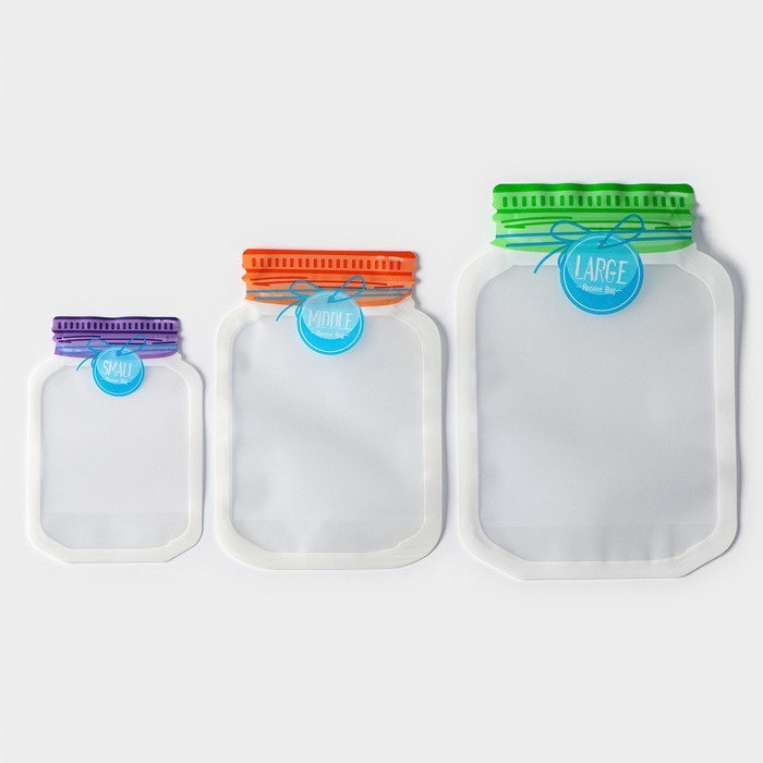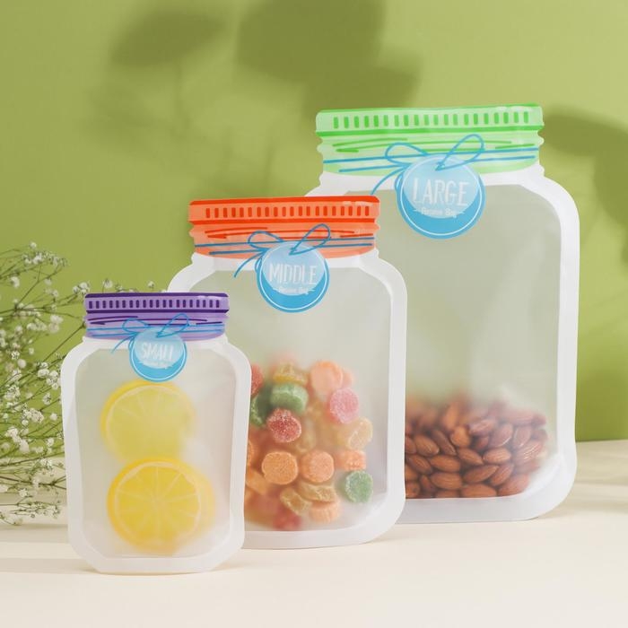 Набор пакетов для хранения продуктов Доляна «Бирки», застёжка zip-lock, 3 шт, 10,5×15 см, 13,5×19,5 см, 17×24,5 см, цвет МИКС