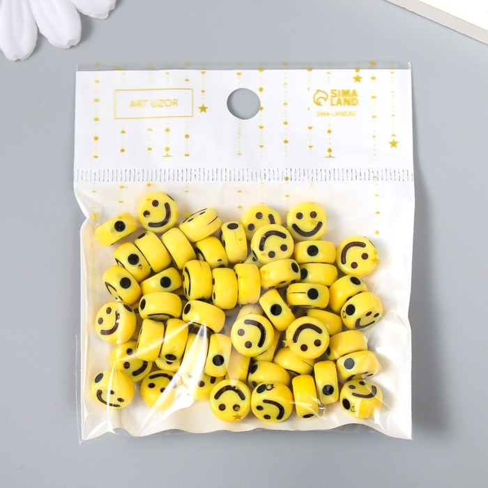 Бусины для творчества пластик "Жёлтый смайл" круг набор 20 гр 0,5х1х1 см