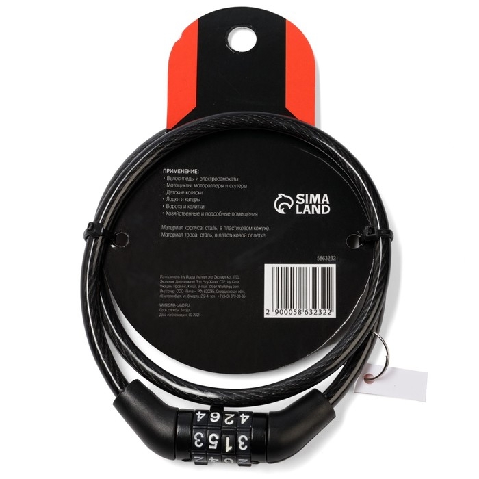 Замок навесной велосипедный LOCKLAND, кодовый,10х650 мм, цвет черный