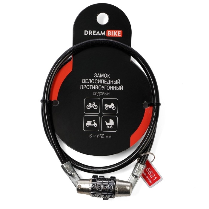 Замок навесной велосипедный Dream Bike, 6х650 мм, кодовый