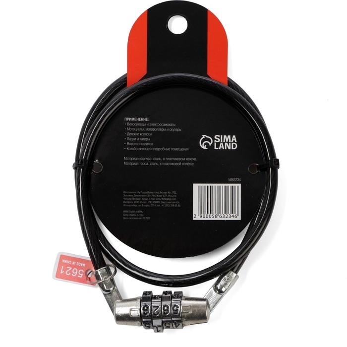 Замок навесной велосипедный LOCKLAND, кодовый, 6х650 мм