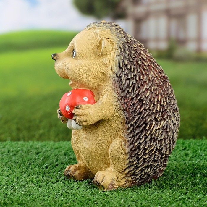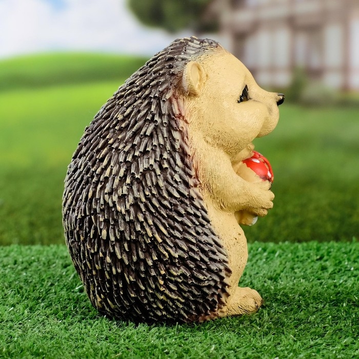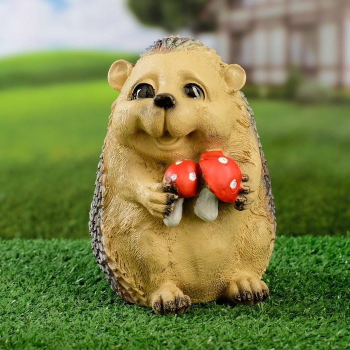 Садовая фигура "Ежик с грибами" 12х13х16см