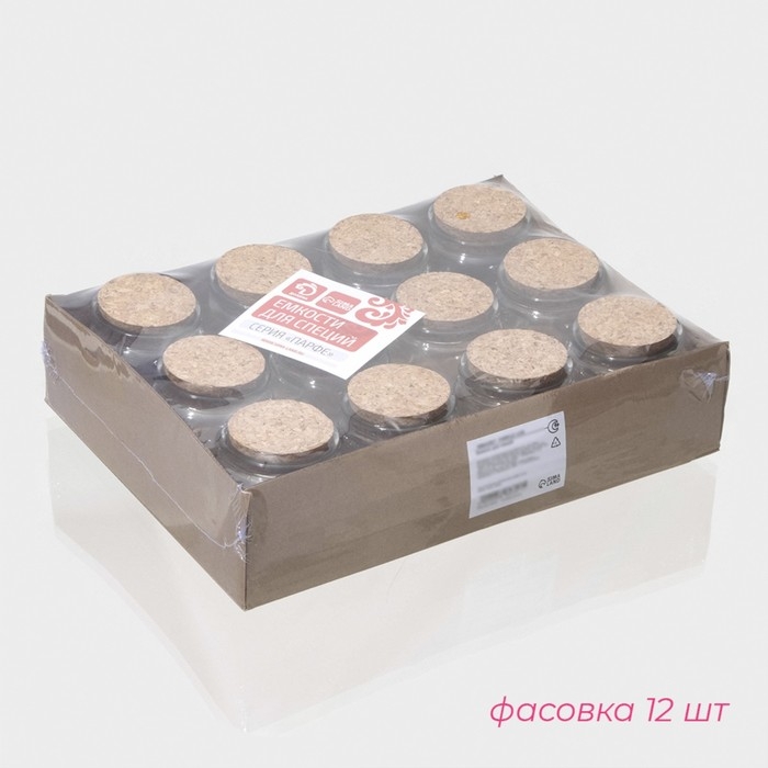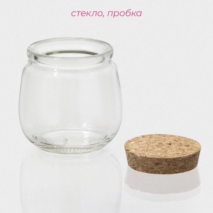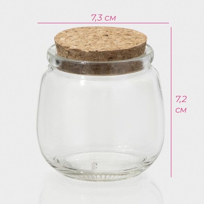 Банка стеклянная для хранения сыпучих продуктов Доляна «Парфе», 200 мл, 7,3×7,2 см, с пробковой крышкой