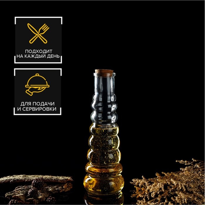 Бутылка стеклянная для соусов и масла с пробковой крышкой Доляна «Парфе. Гармонь», 400 мл, 21,8×7,5 см