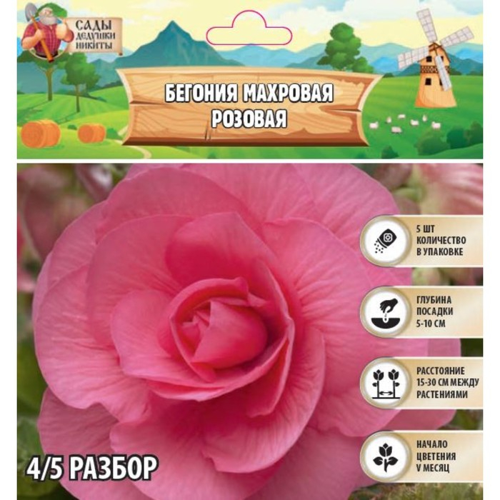 Бегония махровая "Розовая", р-р 4/5, 5 шт,