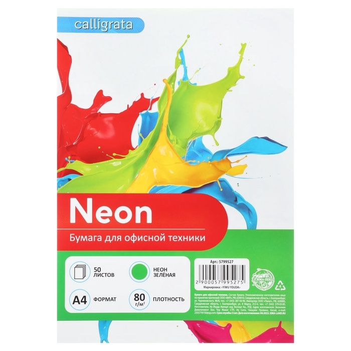 Бумага цветная А4, 50 листов, неоновая, зелёная, 80г/м2