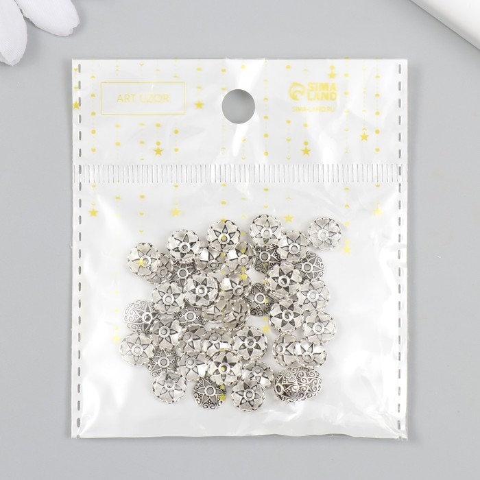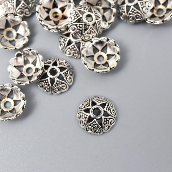 Декор шляпка для бусин "Цветок-полукруг" серебро 0,8х0,8 см набор 50 шт