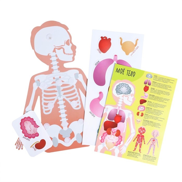 В набор входит: 7 органов на липучках и карточка со строением тела.