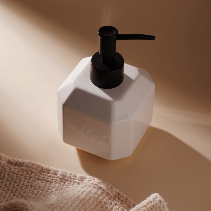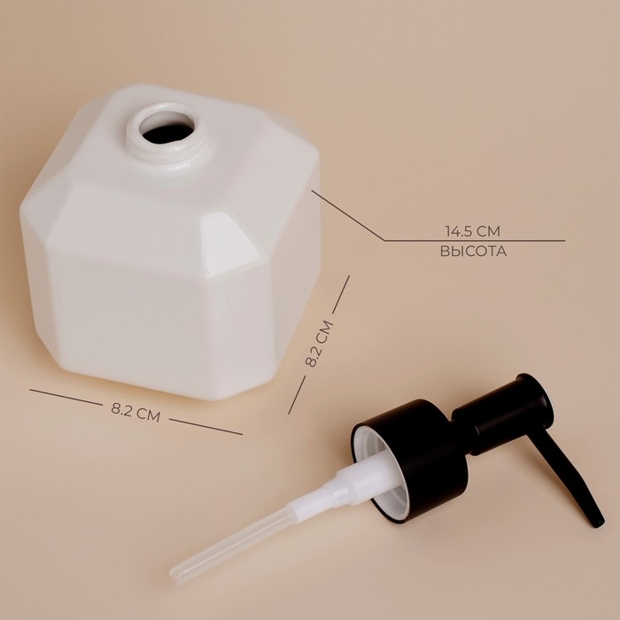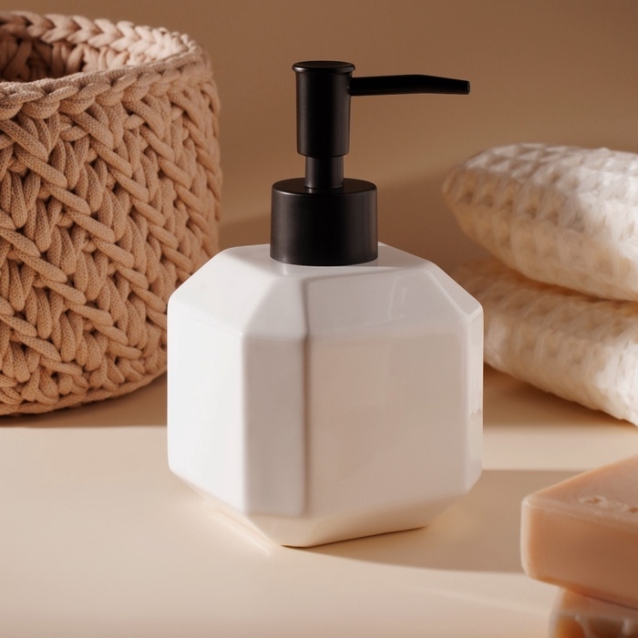 Изготовленный из качественной керамики, дозатор сочетает в себе долговечность и элегантность. Его кубическая форма не только придает современный вид, но и обеспечивает устойчивость на любой поверхности. Благодаря ручному механизму управления, дозатор легко использовать: достаточно легкого нажатия, чтобы получить необходимое количество мыла, шампуня или моющего средства.