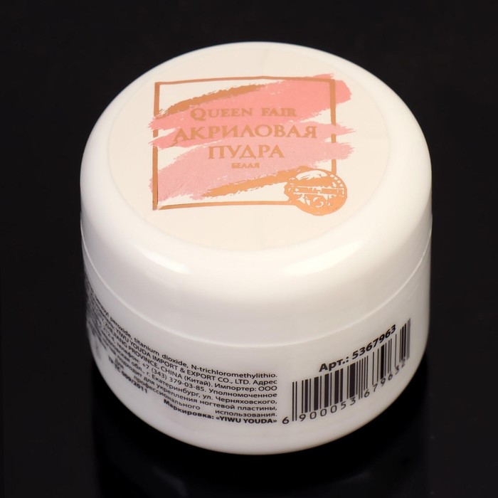 Акриловая пудра для ногтей, 8 гр, цвет белый