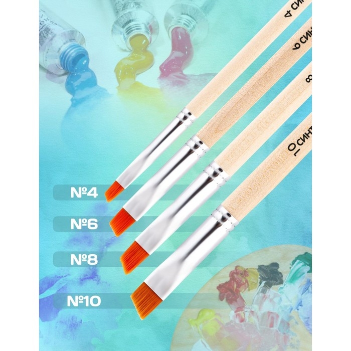 Синтетический волос имеет гладкую структуру и обладает капиллярным эффектом, что позволяет использовать такие кисти при работе с акварелью, гуашью, темперой, акрилом и маслом.