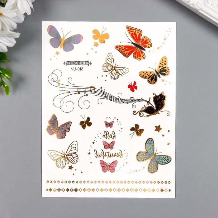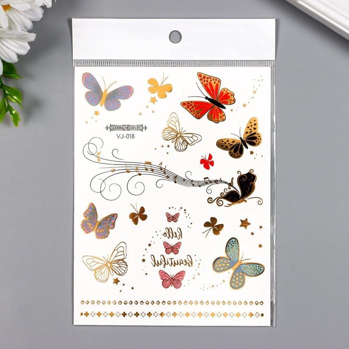 Татуировка на тело цветная с золотом "Бабочки, феи, браслеты" МИКС 16х12 см