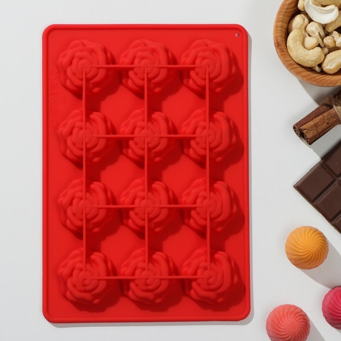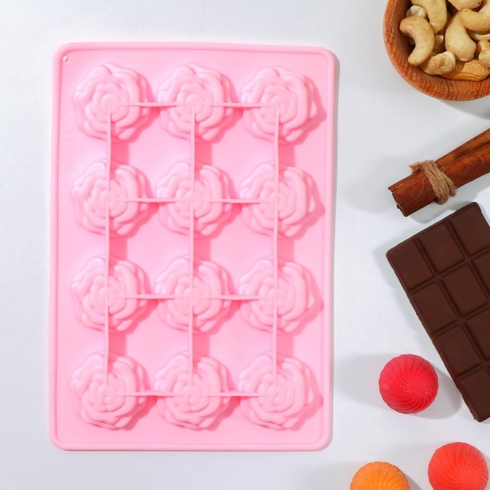 Форма для кондитерских украшений Доляна «Розочки», силикон, 20,7×14,3×1,3 см, 12 ячеек, цвет МИКС