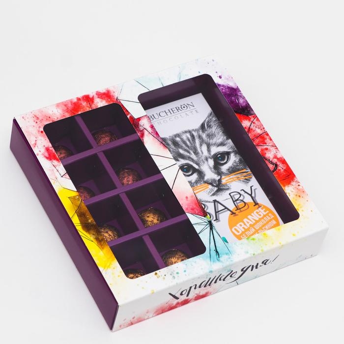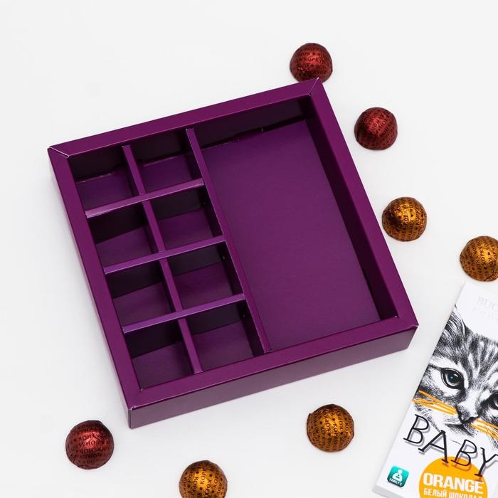 Коробка под 8 конфет + шоколад, с окном, крафт, 17 х 5 х 17,5 х 3,7 см