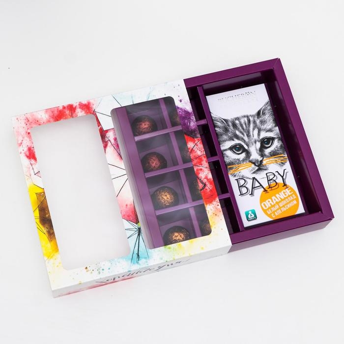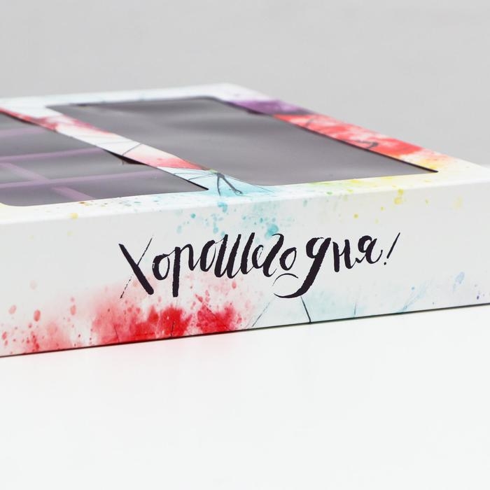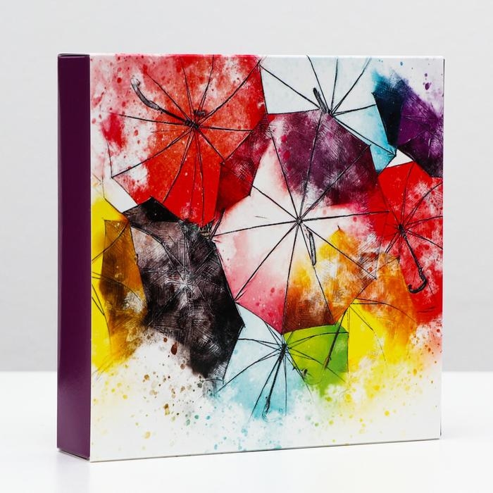 Коробка под 8 конфет + шоколад, с окном , зонтики, 17,7 х 17,85 х 3,85 см