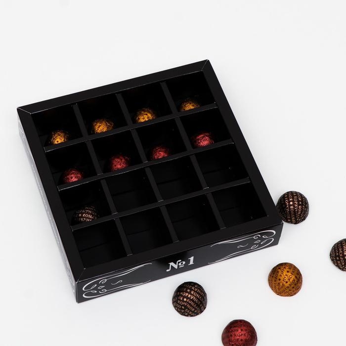 Коробка для конфет, 16 шт, "Мужская", черная, 17,7 х 17,7 х 3,8 см