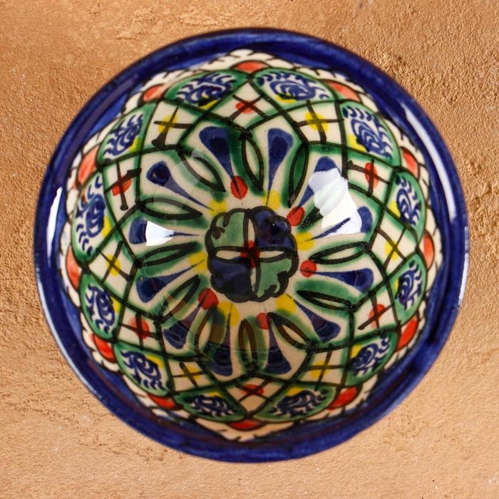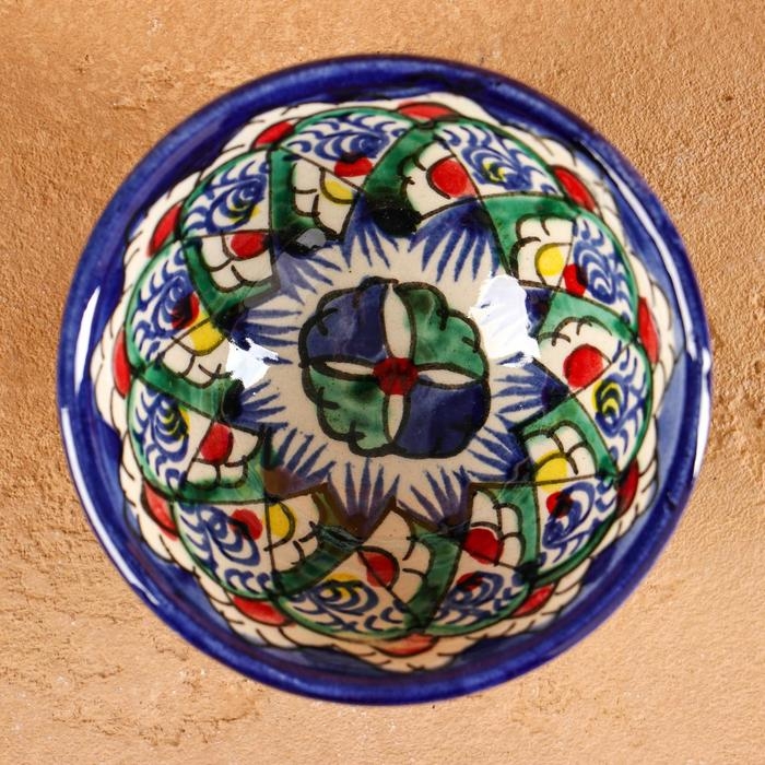 Пиала Риштанская керамика "Узоры", 8,5 см, малая коньячная, микс