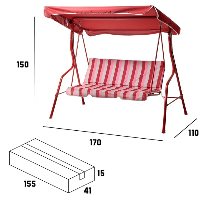 Качели садовые "Уют" красные, 170 х 150 х 110 см максимальная нагрузка 210 кг