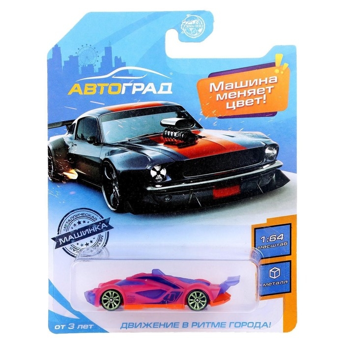 Машина металлическая, меняет цвет от воды, масштаб 1:64, цвет МИКС, на блистере